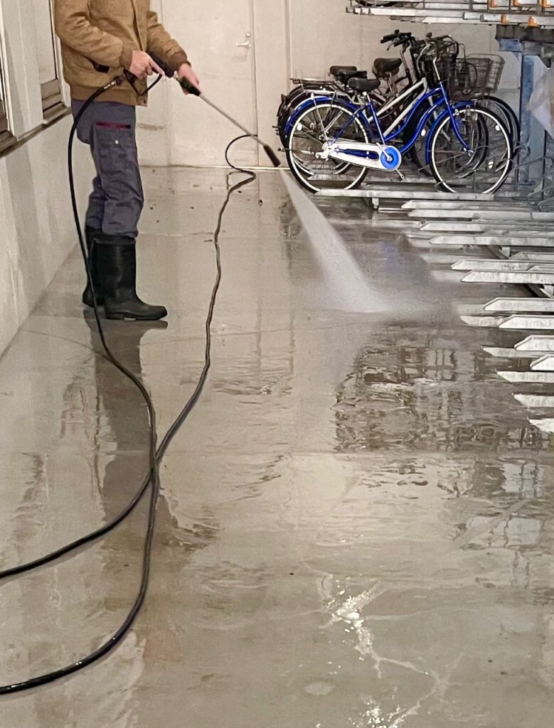 一気に流して、床が本来の表情に戻る瞬間は、